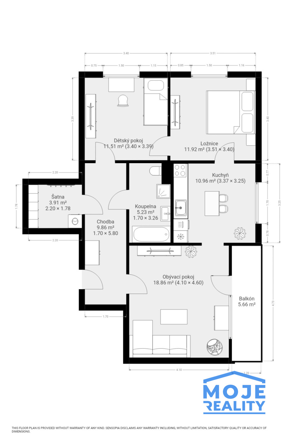Prodej bytu 3+1, 74,5 m2 s balkonem