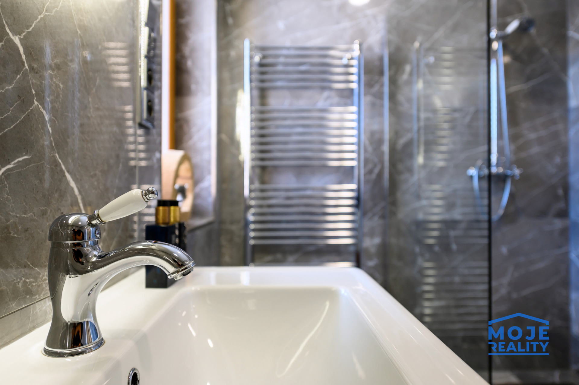 Apartmán o podlahové ploše 79 m² je vybaven moderním vytápěním, které lze dálkově ovládat pro každou místnost zvlášť, což zajišťuje ideální teplotu v každém prostoru. K energetické úspornosti přispívají také fotovoltaické panely, které zajišťují výraznou úsporu energie, a systém tepelného čerpadla AC Heating, který zajišťuje efektivní vytápění a chlazení bytu. Dům splňuje přísné požadavky na energetickou náročnost s třídou B – velmi úsporná. Všechna okna jsou opatřena venkovními žaluziemi pro maximální pohodlí a soukromí.