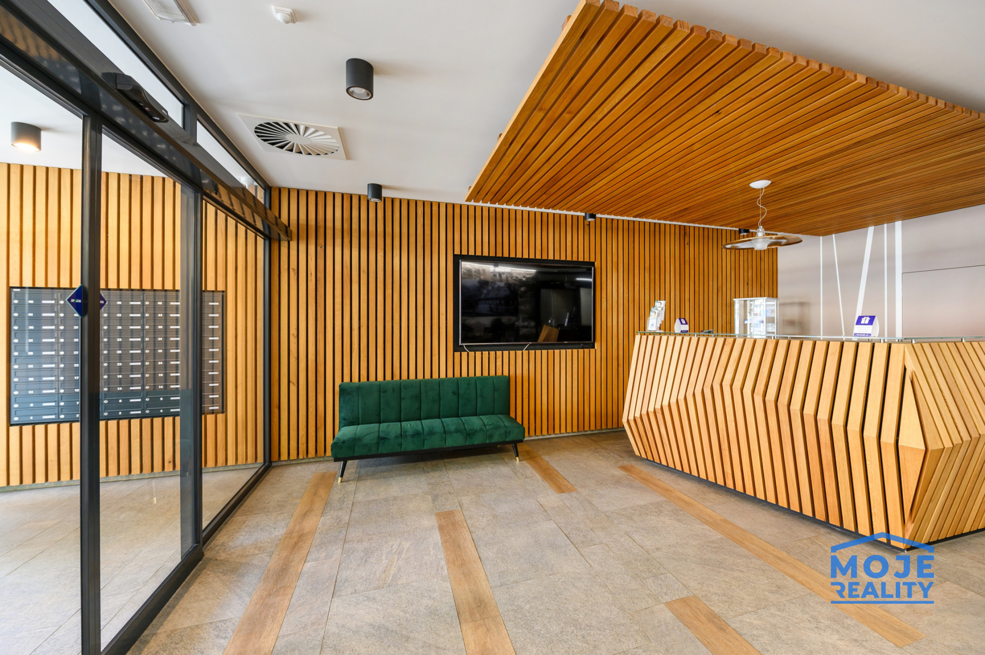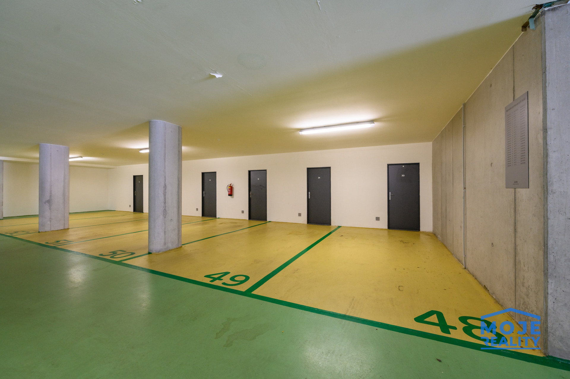 K apartmánu patří sklepní kóje a garážové stání. V přízemí domu je k dispozici recepce s nepřetržitou službou, která zajišťuje bezpečnost a komfort pro všechny rezidenty.