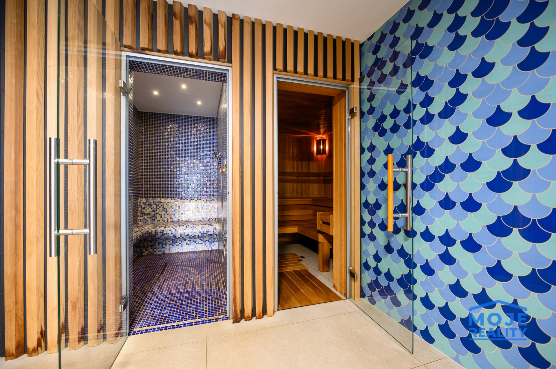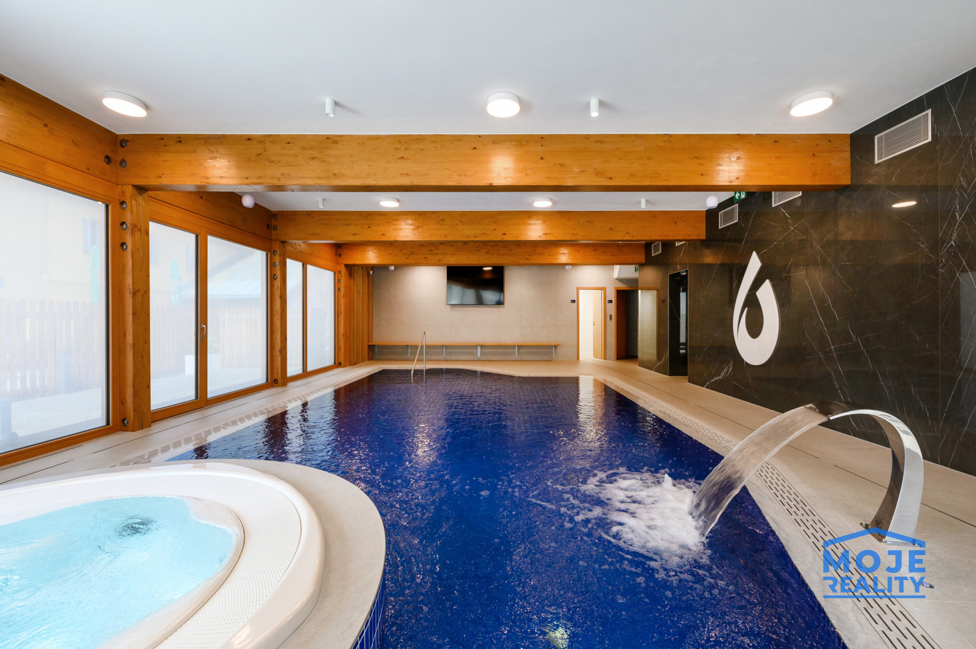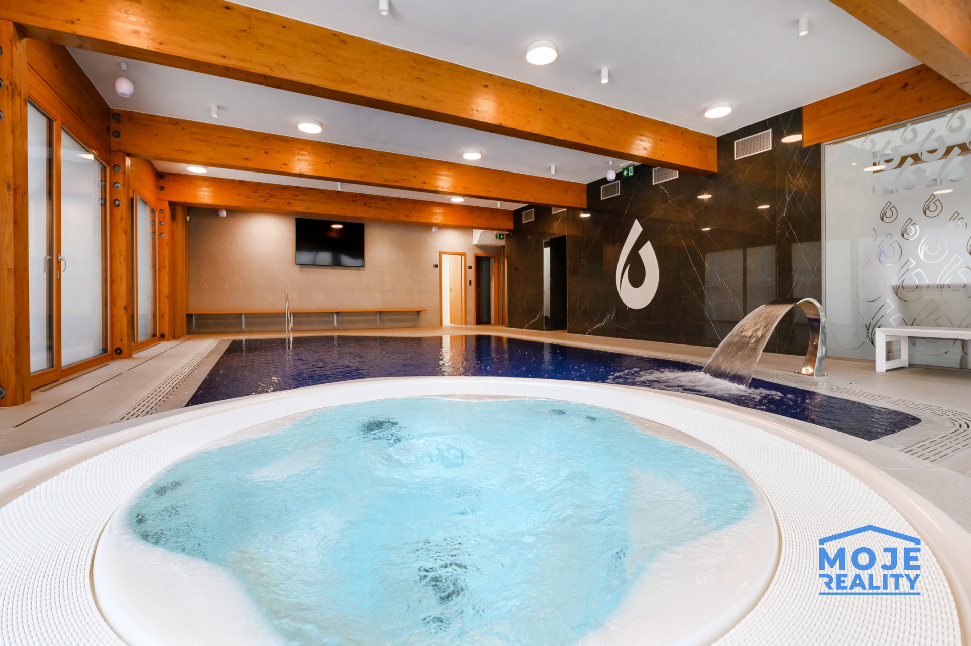 Majitelé apartmánu mají také exkluzivní přístup do moderního wellness centra, které zahrnuje vnitřní bazén, vířivku, dvě sauny (infra a finskou), parní lázeň, relaxační zónu a plně vybavenou fitness. Tyto prostory poskytují výjimečné možnosti pro odpočinek, relaxaci a aktivní trávení volného času.