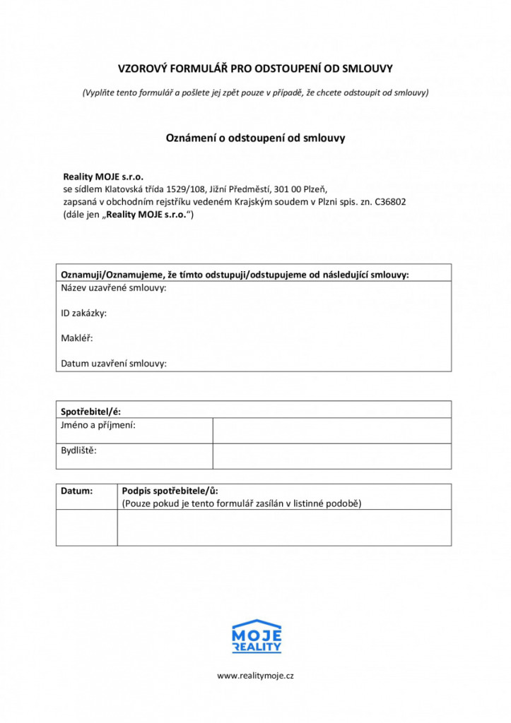 ento reklamační řád je závazný pro Reality MOJE s.r.o. a všechny Makléře Reality MOJE s.r.o. a nabývá účinnosti dne 1.1.2022.